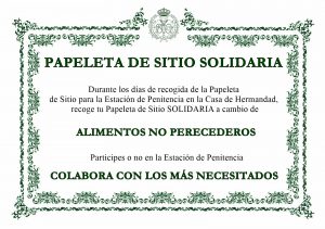 Se recuerda que la papeleta es OBLIGATORIA, GRATUITA y SOLIDARÍA, ya que durante los días habilitados para la retirada de la papeleta de sitio se hará una recogida de alimentos no perecederos.