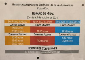 La parroquia de Ntra. Sra. del Pilar está incluida dentro de la Unidad de Acción Pastoral «San Pedro – El Pilar – Los Ángeles». Nuestros consiliarios son D. Juan Carlos Fernández de Simón Soriano, D. Felipe Muñoz Maldonado, D. Raúl López de Toro Martín-Consuegra y D. Raúl López Linarejos.